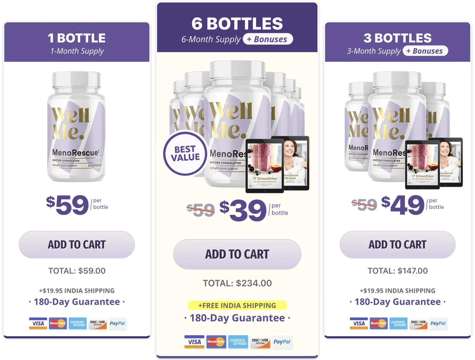 180-Day Guarantee: Unlike many brands that only give you 30 days, MenoRescue™ offers a full 6 months to see the results, showing total confidence in the formula.